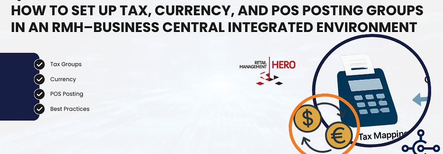 Retail Management Hero (RMH) and Microsoft Dynamics 365 Business Central (BC) are an unbeatable combination for multi-store retailers. With proper care and blending, they are a smooth configuration where retail business seamlessly ties in with accounting, inventory, and financial reporting. All of that and then on top, a very critical consideration of setting up Tax, Currency, and POS Posting Groups to make transactions and reporting stress-free.