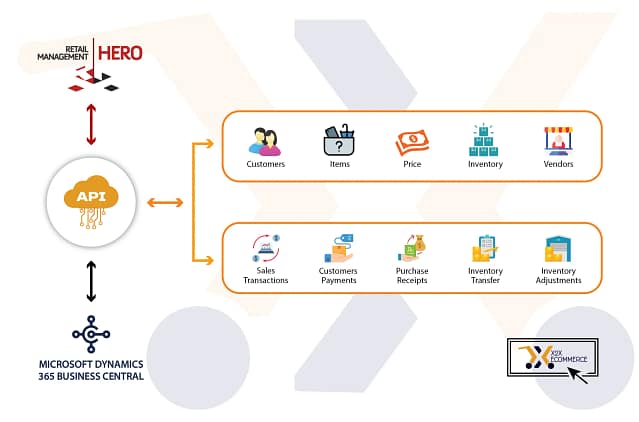 Visualize the seamless data flow between RMH and Dynamics 365 Business Central.